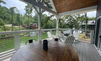 Welcome to our brand new lakefront property! Situated on the picturesque shores of Fort Loudon Lake, this charming retreat offers a truly unforgettable vacation experience. The loft area features a spacious king bedroom. The guest room is equipped with a trundle bed, perfect for accommodating additional guests or children. One of the highlights of this property is the private dock. Soak up the sun, tie up your boat or rent one nearby and explore the lake at your leisure.About pets:No pets allowed.About checkOut:Check out before 10:00 AM.About children:Children allowed: ages 0-17.About checkIn:Check in after 3:00 PM.About smoking:Smoking is not permitted.About minBookingAge:Minimum age to rent: 18.About events:No events allowed.