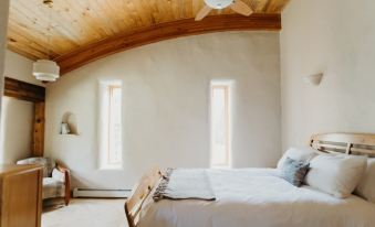 Featuring soaring wooden beam ceilings, bohemian decor, and reclaimed beetle-kill pine accents, this professionally decorated home exudes warmth and character. Outdoors, enjoy a spacious patio with cozy furniture, a grill, and a fire table—ideal for starlit gatherings.