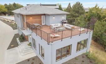 Set above Warm Springs is Malibu Manor, a fun family retreat with stunning, uninterrupted city & Table Rock views. The home features modern living with a gourmet kitchen, 6 luxe bedrooms, 4.5 bathrooms, a fully decked-out game room, a social media wall, art gallery and an entertainment deck with a BBQ, cornhole and an outdoor lounge perfect for watching sunsets. Stay within walking distance to the foothill's trails and the Boise River greenbelt and be only minutes from Downtown, St. Lukes & BSU.