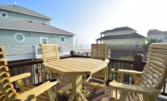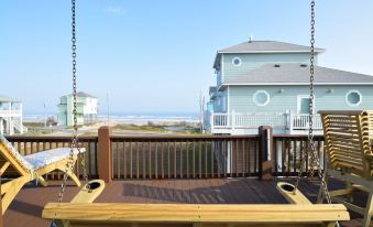 Underneath you can enjoy the tiki bar, picnic table, and 2 more porch swings. While grilling steaks on the charcoal grill you can enjoy a game of cornhole on the provided cornhole boards. We provide all you need for a relaxing beach vacation including beach towels, chairs, toys and boogie boards. We even provide a beach wagon for easy transport of the beach gear. And after a great day on the beach rinse off in the outdoor shower with hot and cold water.
