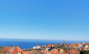 House, built in 1900. 500 m from the sea. For shared use: well-kept garden, swimming pool (seasonal availability: 01.Jun. - 30.Sep.). Grocery 50 m. Golf course 5 km. The owner does not accept any youth groups. "Thyrne" - 500m from the sea", 3-room apartment 46 m2. Object suitable for 4 adults. Living room with 1 double sofabed, TV, radio, CD-player and DVD. 1 room with 1 double bed. 1 room with 1 bed. Kitchen (dishwasher, 4 ceramic glass hob hotplates, microwave, freezer). Shower/WC. Facilities: Internet (WiFi). Parking at the house. Please note: non-smokers only. 400-285977