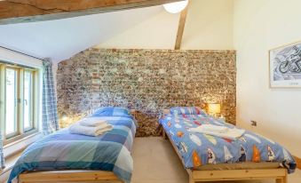 Offering a ground-floor sleeping spot is the twin bedroom, whilst the stairs to the first floor bring you two delightful double bedrooms, continuing to showcase the timber beams and neutral décor with plenty of storage.
