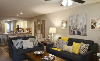 This condo is in a perfect location - close to everything but also very quiet and secluded. The unit is beautifully decorated and the bedroom furniture is lovely. The only 2 negatives would be that the couches are not comfortable, and the other thing was the hot tub was not functioning while we were there which was a real bummer because we were hoping to relax in that in the evenings.