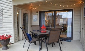 Nice condo, nicely decorated, clean. Ground floor-there is one flight of stairs to go down to get to it. Very quiet, clean complex. Communication with the hosts was 10/10, they were excellent! Both beds and bathrooms were nice. Beautiful kitchen, dining, view out living room sliders. Cute back porch.