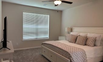 Retreat to one of the inviting bedrooms, each thoughtfully appointed with plush bedding, ample storage space, and modern amenities to ensure a restful night's sleep. With 4 bedrooms, including 1 king bed, 2 twin beds, and 2 queen beds, there is plenty of space for everyone to unwind. The 2 bathrooms are equipped with amenities such as a hair dryer, bathtub, and even a jetted bathtub for a luxurious soak in the master. Other features include AC, WiFi, a washing machine, and heating. Whether you're exploring the city or simply enjoying a cozy night in, we look forward to welcoming you to our place.The primary bedroom boasts a luxurious king-sized bed and an en-suite bathroom with a walk-in shower and soaking tub, offering a peaceful sanctuary to unwind and rejuvenate. The master includes a ceiling fan and smart TV.