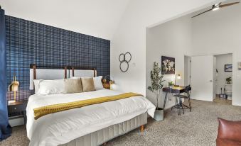 🛏️ King Primary Bedroom (Top Floor): Brand new king pillow-top mattress, luxury linens, balcony, Smart TV, desk, full ensuite bathroom.