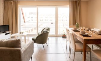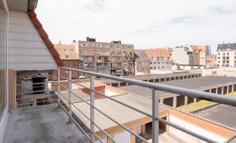 Modern residence "Residentie Zandloper". In the centre of Bredene, 500 m from the sea, 500 m from the beach. In the house: lift, storage room for bicycles. Public parking. Shop, restaurant 150 m, bakery 100 m, tram "De Lijn" 200 m, bus stop "De Lijn" 1 km, railway station "Oostende" 4 km, sandy beach 400 m. Nearby attractions: Markt (dinsdagmorgen) 50 m, Sealife Blankenberge 25 km, Plopsaland De Panne 47 km, Hangtime Oostende 2 km. Neighbourhood highly sensitive to noise. Quietness and good behaviour expected. "Duplex", 3-room apartment on 2 levels, on the upper floor, south-west facing position. Comfortable furnishings: entrance hall with separate WC. Living/dining room with dining table, digital TV, international TV channels, DVD and electric heating. Exit to the balcony. Open kitchen (dishwasher, 4 ceramic glass hob hotplates, toaster, kettle, electric coffee machine, combination microwave). Upper floor: 1 double bedroom with 1 double bed (140 cm, length 200 cm), electric heating. 1 double bedroom with 1 double bed (2 x 90 cm, length 200 cm), electric heating. Bath/shower, sep. WC. Electric heating. Small balcony 5 m2, north-west facing position. Facilities: hair dryer. Internet (WiFi, free). Please note: non-smoking house. Maximum 1 pet/ dog allowed. Smoke alarm, fire extinguisher.