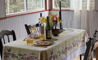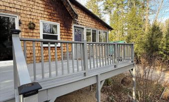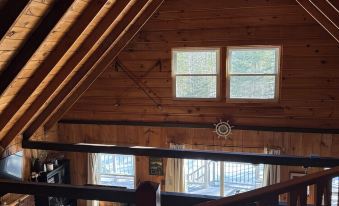 Please note: The front entrance has a number of stairs, but there’s a side access to the deck with fewer steps that may be easier for some guests.About pets:No pets allowed.About checkOut:Check out before 10:00 AM.About children:Children allowed: ages 0-17.About customRules:Please keep shoes at door. WATCH with the low balcony. Corner is protected with rope so children must be watched at all times while upstairs..We have a very close community (NO PARTIES or EVENTS) quiet hours 10pm to 9am. Be respectful of neighbors and cabin. Neighbors live there year round.,Help yourself to the pantry shelf. Teas, herbs, sugar, coffee, etc. There are a few basic condiments we leave in the fridge for use..About checkIn:Check in after 4:00 PM.About smoking:Smoking is not permitted.About minBookingAge:Minimum age to rent: 27.About events:No events allowed.
