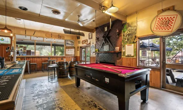 Beautiful large deck catering for a lot of people. We had a very large group with dogs & it suited the group. Was very hot in the sun till it went down behind the mountain, some of our group had to move tables. The food was very small serves ( whole group) and was expensive for what it was. I had the beef cheese burger & there was more chips than burger. For $27 I didn't expect to come away still hungry. Others had the steak which was $41 and also left hungry. Haven't been for 2 years but was very disappointed.