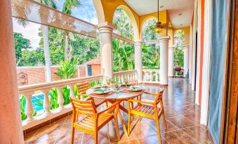 Enjoy your private oasis with cool breezes while sitting on the expansive pool side terrace. The property is completely walled off for privacy, with heated lap pool, and air-conditioned throughout. 3 Bedrooms, 2 full bathrooms. Enjoy fine amenities such as large entertaining kitchen with granite counter tops and eating bar, marble bathroom counters, and large tiled walk in showers. Custom stained glass windows accent the high ceilings and large arched wood clad windows. Awesome stone paths lead you around the gardens, 2 pergolas, and up to the rooftop patio with mountain views in the distance and mango groves next door. This is a private gated community with 24/7 security on duty, and only 1 mile (15 minute walk) from beautiful Bucerias beach. Be our guest and enjoy our "Casa de Paz" (House of Peace).About pets:No pets allowed.About checkOut:Check out before 11:00 AM.About children:Children allowed: ages 0-17.About checkIn:Check in after 4:00 PM.About smoking:Smoking is not permitted.About minBookingAge:Minimum age to rent: 25.About events:No events allowed.