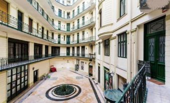 The apartment is located on a pedestrian street in downtown Budapest. It is in an elegant, well kept house, the windows of the apartment look onto an inner courtyard, providing a quiet atmosphere.