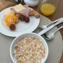아침 식사 메뉴가 별로 없었어요. 아마 이 나라 과일 자체가 맛이 없는 건지, 전부 다 너무 시고 수박만 그나마 나았는데 그것도 밍밍했고요. 빵 종류는 많았지만 먹을 만한 게 하나도 없었고 전부 너무 달았어요.