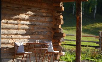 民宿的位置絕佳,步行至觀景台和村中心都十分便利,卻又巧妙地避開了主街的嘈雜。推開院門,一座典型的圖瓦小木屋靜靜佇立在雪山和白樺林的環抱之中。清晨,推開窗户,晨霧如一條潔白的哈達纏繞在山間,帶着青草和松木清香的空氣瞬間湧入肺腑,那一刻,所有的疲憊都被洗滌一空。