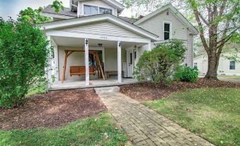 *Front porch overlooks Burton Village square with a swing & covered area.