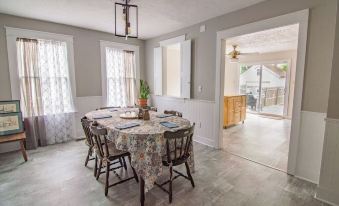 This home has been well maintained for a century home and maintains those characteristics. Inside door locks bathrooms etc. require usage of separate hook style lock to maintain privacy in the space. 2 bathrooms neither are master style. Full bathrooms are on each floor. 3 bedrooms upstairs, office area that is between second living and lower bathroom has sofa bed that can comfortably sleep 2.About pets:Pets allowed: dogs less than 50 lbs per pet (limit 2 pets total).REQUEST PERMISSION FIRST BEFORE BRING PETS !!!!!!!.About checkOut:Check out before 12:00 PM.About children:Children allowed: ages 0-17.About checkIn:Check in after 12:00 PM.About smoking:Smoking allowed: in designated areas.About minBookingAge:Minimum age to rent: 21.About events:Events allowed: family gatherings, birthday parties, weddings.Maximum event attendees: 12.