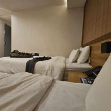숙소 답변: 안녕하세요, 프리마호텔입니다 :)김해공항 이른 아침 비행 일정에 맞춰 저희 숙소를 이용해주셔서 감사합니다.조용하게 휴식하셨고 하룻밤 머무르기 괜찮았다고 말씀해주셔서 다행입니다. 객실 크기는 다소 아쉽게 느껴지셨을 수 있으나, 욕실을 넉넉하게 이용하셨다는 점을 좋게 봐주셔서 감사합니다.앞으로도 짧은 일정이나 공항 이용 고객님들께 편안한 숙소가 될 수 있도록 노력하겠습니다.소중한 후기 감사합니다!