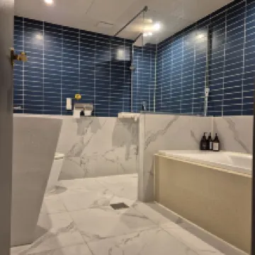 호텔에 욕조가 있어서 저녁에 아이들 반신욕 시켜주려고 해당 객실로 예약했어요. 화장실이 미끄러운 편인데 슬리퍼 신으면 괜찮아요.