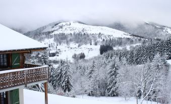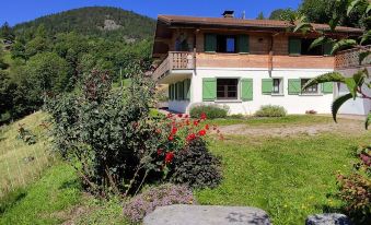 A 180° view over the valley and neighboring peaks, a stream, the Peute Goutte, which crosses the property, maximum sunshine as the chalet faces East-South-West, and the peace and quiet provided by 5 hectares of property make this a restful place to spend your vacations, and a starting point for numerous hikes in fine weather, snowshoeing or cross-country skiing in winter.