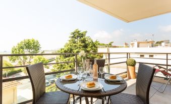 A superbly equipped living room, 2 bedrooms on the quiet side, 2 bathrooms each with a shower, a sunny balcony from noon to evening exceptional. So awesome