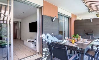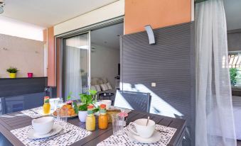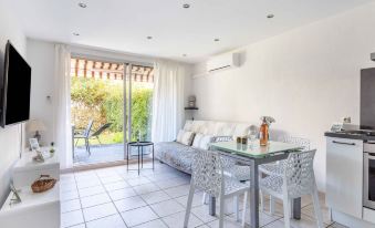 Apartment block "Le Marbeau". In the district of Cros de Cagnes, in a quiet position in the residential district, 550 m from the sea, 500 m from the beach, south facing position. Grocery, supermarket 450 m, shopping centre 3.5 km, restaurant 700 m, bar 260 m, bakery 400 m, café 260 m, bus stop "la pinede rn7" 250 m, railway station "Gare de Cros de Cagnes" 1 km, shingle beach "Plage publique" 550 m. Golf course (18 hole) 14 km, sailing school 1.4 km, tennis 2 km, riding stable 8 km, cycle lane 750 m. Nearby attractions: Chateau Grimaldi 1.8 km, St Paul de Vence 7 km, Marineland Antibes 6 km, Nice 11 km, Cannes 21 km, Monaco 31 km. Well-known lakes can easily be reached: Lac St Cassien 50 km. Hiking paths: Col de Vence 20 km, Parc national du Mercantour 62 km. 2-room apartment 40 m2, on the ground floor, south facing position. Bright, beautiful and modern furnishings: living/dining room with 1 sofabed (140 cm, length 190 cm), TV (flat screen), air conditioning. Exit to the garden, to the terrace. 1 room with 1 french bed (1 x 140 cm, length 190 cm). Exit to the garden, to the terrace. Open kitchen (oven, 3 induction hot plates, toaster, kettle, microwave, freezer, electric coffee machine). Shower/WC. Gas heating. Terrace 10 m2, south facing position, garden 80 m2, south facing position. Terrace furniture. View of the garden. Facilities: washing machine, iron, hair dryer. Internet (WiFi, free). Parking (1 car). Please note: smoke alarm. Offer by a private individual according to Art. 155, IV of CGI. 06027024724SB