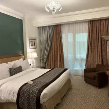 방이 넓고, 주전자도 있고, 1층에 레스토랑도 꽤 있고, 600미터 거리에 현지 대추야자와 말린 과일을 파는 곳이 있는데 가격이 공항보다 훨씬 저렴해요. 까르푸 옆에 현지 레스토랑이 있고 전시장까지 30분 정도 걸어갈 수 있습니다.