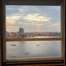 나일강 전망, 실내 환경, 그리고 도로가 선명한 대조를 이룹니다