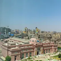 뒷문은 타흐리르 광장으로 이어지며, 왼쪽으로 돌아서 100m를 걸으면 이집트 박물관에 도착합니다.