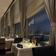 일찍 체크인하고 라운지에서 체크인했는데, 거기서 아침 식사도 먹었어요. 라운지는 높은 곳에 있고 강을 바라보고 있어요. 라운지 디너의 메인 요리는 맛있었고, 붐비지 않았고, 분위기도 좋았습니다. 우리가 신혼여행 중이라는 걸 알고, 특별한 장식도 준비해 주었습니다. 라운지 매니저인 라미와 마헤세에게 특별 감사드립니다. 문 앞에는 많은 컨시어지가 있었고, 그들은 매우 바빴습니다. Tamer와 Loay는 우리가 택시의 위치를 알아차리는 데 도움을 주었습니다.