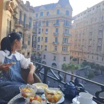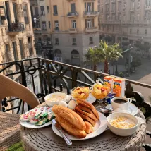 위치가 좋고, 이집트 박물관까지 걸어서 갈 수 있어요. 엘리베이터가 없어서 짐을 계단으로 들고 올라가야 해요. 방에 모기가 있어서 물렸어요. 매일 동일한 스타일의 아침 식사가 제공되며, 발코니에서 즐기실 수 있습니다.