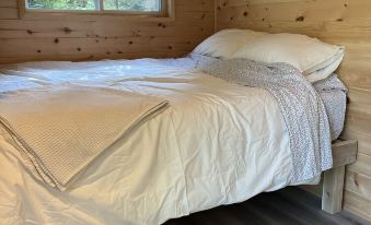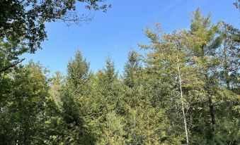 High Meadows bunkie is immersed in the forest, offering privacy from the surrounding trees and nestled up on the hill overlooking the pond. It is a cozy yet spacious place to experience the perfect little getaway. Enjoy waking up to greenery, fall colours or a winter wonderland, depending the time of year you stay! The outdoor deck and seating area allows you to enjoy this landscape surrounding all the more. Enjoy a fire by the pond, a sky fall of stars, a walk through the forest or a simple breakfast in this sweet escape.