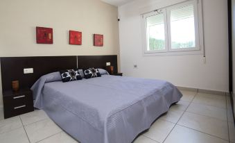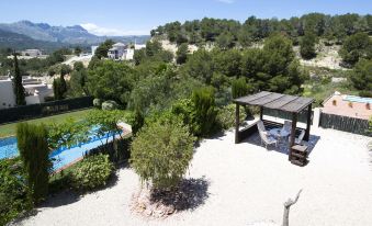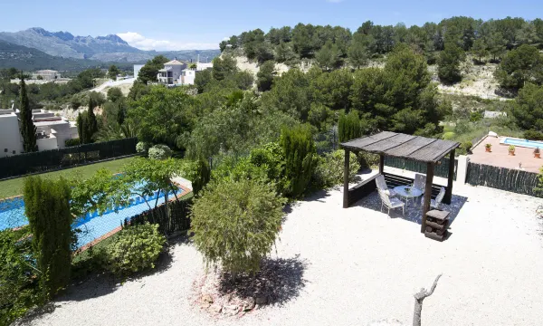 Empedrola: Beautiful, cosy terraced house "Una". In the resort 5 km from the centre of Calpe, in a quiet, sunny position, 5 km from the sea, 5 km from the beach. For shared use: property (fenced) with lawn and trees, swimming pool (seasonal availability: 01.Jan. - 31.Dec.). Children's pool. Private: property (fenced), garden flowers and trees, parking at the house. Grocery 5.4 km, supermarket 5.4 km, bus stop "Parada Bus" 2.7 km, sandy beach "Playa de La Fosa" 5.7 km. Sports harbour 6.3 km, golf course (9 hole) 9 km, tennis 3.9 km. Nearby attractions: Aqualandia, Mundomar, Terra Mítica, Terra Natura, Benidorm Palace (Benidorm). "Una", 4-room semi-detached house on 2 levels. Spacious and bright, comfortable and beautiful furnishings: living/dining room with satellite TV, digital TV, air conditioning and forced-air heating. Exit to the terrace. 1 room with 1 double bed, air conditioning and forced-air heating. Open kitchen (oven, dishwasher, 4 ceramic glass hob hotplates, microwave). Shower/WC. Upper floor: 1 room with 1 double bed, air conditioning and forced-air heating. 1 room with 2 beds, air conditioning and forced-air heating. Exit to the terrace. Bath/WC. Patio. Terrace furniture. View of the valley. Facilities: washing machine, children's high chair, baby cot for up to 2 year olds. Internet (WiFi, free). Parking at the house. Suitable for families. AT-456718-A
