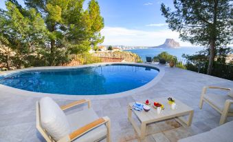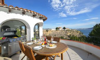 Maryvilla: Beautiful villa "Gasparet", 2 storeys. In the resort 3 km from the centre of Calpe, 9 km from the centre of Altea, in a quiet, sunny position residential area (villas), traffic calmed area, 120 m from the sea, 1 km from the beach. Private: property, terraced garden, swimming pool (10 x 5 m, seasonal availability: 01.Jan. - 31.Dec.). Outdoor shower, terrace. Very steep motor access. Stepped path (41 steps) to the house. Parking on the premises. Grocery 4 km, supermarket 4 km, restaurant, bar, café 450 m, bus stop 3.4 km, sandy beach "Playa Arenal" 5 km, rocky beach "Cala Les Urques" 150 m, swimming bay 120 m. Sports harbour 1 km, golf course (18 hole) 15 km, tennis 450 m. Nearby attractions: Aqualandia, Mundomar, Terra Mítica, Terra Natura, Benidorm Palace (Benidorm), Les Fonts de l'Algar, Castillo de Guadalest. Please note: not suitable for children under 4 years. The owner does not accept any youth groups. "Gasparet", 6-room villa 257 m2 on 2 levels. Spacious and bright, beautiful and cosy furnishings: open living/dining room with satellite TV, air conditioning and forced-air heating. Exit to the terrace. 1 room with 1 french bed (1 x 180 cm, length 200 cm), air conditioning and forced-air heating. 1 room with 1 french bed (1 x 135 cm, length 200 cm), air conditioning and forced-air heating. Open kitchen (oven, dishwasher, 4 induction hot plates, toaster, kettle, microwave, electric coffee machine) with air conditioning. 2 showers/WC. On the lower ground floor: (exterior staircase) open living room with air conditioning and forced-air heating. 2 rooms, each room with 1 french bed (1 x 150 cm, length 200 cm), air conditioning and forced-air heating. Bath/WC. Large terrace. Terrace furniture, barbecue, deck chairs, sitting area. Marvellous view of the sea and the countryside. Facilities: washing machine, iron, children's high chair, baby cot for up to 2 year olds, hair dryer. Internet (WiFi, free). Parking (2 cars), garage (2 cars) at the house. Please note: not suitable for children under 4 years. Non-smoking house. No internal connecting door between the floors. VT-513429-A ESFCTU00000302900030884500000000000000000VT-513429-A3