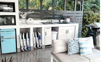 THE MOJONEO LIFESTYLE: THE DIAGRAM TO COMFORT. At Villa Mojoneo you will have a multi-dimensional experience, with the opportunity to enjoy the lavish indoor and outdoor spaces the villa has to offer. THE MOJONEO EXPERIENCE: Located at the southeast of Puerto Rico, Yabucoa [Yah-boo-ko-ah) is historically known for contributing to Puerto Rico’s sugar industry, however, this city has a rich local culture, spectacular views of the ocean and mountainous scenery as well as known beaches in our visitors’ top list of places to visit during their stay. At approximately 1.5hr drive away from the Luis Muñoz Marín international Airport, you will find the breathtaking inland treasure of Villa Mojoneo. Villa Mojoneo is located inside a gated community called, “El Cocal Beach and Country Club” which has access to one of Yabucoa’s most popular coastal spots, “El Cocal Beach.” The meaning of popular in this instance does not translate to multitudes congregated in the beach as observed in the San Juan area, rather, a more secluded environment. At check-in, we will provide our guests with a key to access the beach from the gate, approximately 3-4 minutes walking distance from the villa, and on some occasions, you can even have most of the beach to yourself! El Cocal has a small rocky formation that creates a natural pool called, “La Pocita”, which is perfect for our younger visitors, adding another level of safety. There is another area of the beach, attractive to surfers, which has good waves to catch! Besides feeling safe, you will also experience the privacy of Villa Mojoneo’s spaces while you enjoy the freedom of nature. Our experienced and accommodating, super-host will take care of you from the moment you express your interest through the end of your stay. We hope you have a grandeur feeling, because we have made this space available for someone special, YOU! In addition to the multiple indoor and outdoor spaces that Villa Mojoneo has to offer, the gated community of El Cocal Country and Beach Club has a recreational area for kids and open areas to take your dog for a walk with the ocean breeze and that salty smell that reminds us we’re near the beach. The community also offers a trash disposal area, near the entry gate, where our guests should take the trash daily to avoid the Caribbean insects that take advantage of any opportunity to join our guests in their stay. To enjoy the area at its fullest, we recommend our guests to rent a vehicle as the Uber and Taxi service in the area is not robust enough to support the demand. In a 10-15min drive, you’ll find a variety of fast foods, bakeries and restaurants that will add the puertorrican taste to your stay [we have crafted a list of recommendations for reference, to send upon request]. Our guests will also have access to a pharmacy and supermarket in this short distance range. The Outdoor Fascination: • Electric Gate Access • Two Parking Spots • Pergolas entrance and landscape gardening • A Priceless Rooftop View with Aspen Spa Jacuzzi for 4 adults, a 55” TV, 2 hammocks, 2 chaise lounges, an exterior patio set and curtains to provide privacy • Gazebo with covered kitchen area that includes small fridge, microwave, conventional oven, and Weber BBQ Grill • Exterior dining room for 6 guests • Uncovered patio seating area • Two terrace areas. The Inside Appeal: Lavish interiors inspired by trending decor styles and quality products make this home distinct. • Two bedrooms with air conditioning: King and Full Beds • Area with sofa bed • Full bathroom with the suitability of hot/cold water • Air conditioning available in open spaces • A Top-Notch Kitchen including serveware, dinnerware and cookware • Living Room Entertainment – TV – 65” • Dining Area that seats four guests, fully dressed including plates, drinkware and utensils • A Well-Furnished Home Office • Washer & Dryer. The property is equipped with automatic electric generator and water tank.About pets:No pets allowed.About checkOut:Check out before 11:00 AM.About children:Children allowed: ages 0-17.About checkIn:Check in after 4:00 PM.About smoking:Smoking is not permitted.About events:No events allowed.
