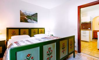 Beautiful, comfortable chalet "Cesa Minach", 2 storeys, detached, surrounded by meadows. Lavanderia a gettoni a 300 m. 500 m from the centre of Canazei, in a sunny position, along the wooded area, 350 m from the skiing area. For shared use: large garden (not fenced) with lawn. In the house: storage room for bicycles, storage room for skis, central heating system, heating available only from 01.Dec. - 01.May.. In Winter: please take snow chains. Stepped path (3 steps) to the house. Parking at the house, public parking on the road. Shop, supermarket 500 m, restaurant 200 m, bar, café 500 m, bus stop 50 m. Gondola lift 350 m, ski bus stop 50 m. Nearby attractions: Sella Ronda 350 m, Lago di Carezza 24 km. Please note: Additional accommodations can be booked. 2-room apartment 30 m2, on the upper ground floor. Simple furnishings: living/dining room with dining table and TV (flat screen). Exit to the garden. 1 double bedroom. Kitchenette (2 ceramic glass hob hotplates, microwave). Shower/bidet/WC. View of the mountains and the valley. Facilities: hair dryer. Please note: fridge without freezer, non-smokers only. Maximum 1 pet/ dog allowed. Fire extinguisher. IT022039C2NXET5FFU