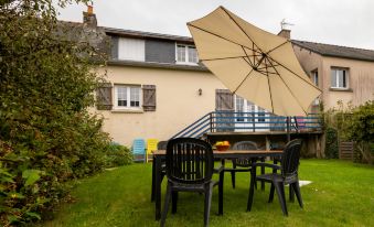 Terraced house, 2 storeys. In the centre of Cancale, excellent location: right in the centre but still quiet, 600 m from the sea, from the beach. Private: well-kept garden (fenced) with lawn 600 m2 flowers. Terrace, garden furniture, barbecue, public parking on the road. Shop 100 m, grocery 150 m, supermarket 150 m, shopping centre 1.4 km, restaurant 180 m, bar 150 m, bakery 150 m, bus stop "la poste" 180 m, railway station "La Gouesnière" 8.7 km, sandy beach "la Houle" 600 m, thermal baths "Thermes marins de St Malo" 12.4 km. Sports harbour 800 m. Nearby attractions: Saint Malo Intramuros 15.6 km, Le grand aquarium de St malo 14.4 km, Dinan 35.3 km, Dinard 21.6 km, Dol de Bretagne 21.3 km, Le Mont St Michel 47 km. Please note: the owner lives on the same property. "Esprit Bailly", 4-room terraced house 100 m2 on 2 levels. Spacious, comfortable furnishings: large living/dining room with TV (flat screen). Exit to the garden, to the balcony, to the terrace. Large kitchen (4 gas rings, toaster, kettle, microwave, freezer, grill, electric coffee machine). Sep. WC. Upper floor: 2 rooms, each room with 1 french bed (1 x 140 cm, length 190 cm). 1 room with 2 beds (90 cm, length 190 cm). Shower/WC. Gas heating. Balcony 3 m2, north facing position and west facing position, large terrace 12 m2, north facing position and west facing position. Terrace furniture, barbecue. Facilities: washing machine, dryer, hair dryer. Internet (WiFi, free). Please note: non-smoking house. Maximum 1 pet/ dog allowed. Smoke alarm. Offer by a private individual according to Art. 155, IV of CGI.