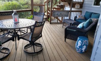 This recently remodeled 3 bedroom, 3 bath vacation refuge is the private main level of a home with spectacular views of Ecola Creek and the ocean! Two beautifully furnished king suites, one with Jacuzzi tub, the other with direct ocean view. Additional room with queen sleeping. Complete kitchen with bar and table seating, open to living area with fireplace. Enjoy nature from the large private deck with comfy seating and additional outdoor dining, and again, that stunning ocean view! Private entrance, and parking for 2 cars on site. Additional niceties include beach wagon, chairs and umbrella. Free cruiser bikes available by arrangement. Contact the owner for any special requests.