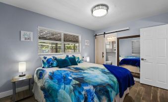 The Peacock Paradise features three comfortable and stylishly decorated bedrooms, each offering a tranquil haven for relaxation. Each bedroom boasts luxurious linens, plush bedding, and ample storage space to ensure your stay is comfortable and clutter-free. Wake up refreshed and step onto the patio directly from the master bedroom, enjoying the first rays of sunshine as you start your day.