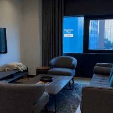 호텔의 하드웨어 시설은 매우 좋고 매우 새롭고 방 하나와 거실 하나, 아침 식사는 세미 뷔페, 표준이 매우 높고 맛도 좋습니다. 호텔은 도심에 있으며 전시장과 부두까지 도보 거리에 있으며 아래층에는 버거 킹이 있으며 전반적으로 매우 만족스러운 숙박이었습니다.