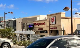 Walgreens pharmacy is at cross the street restaurants and casinos are walking distance