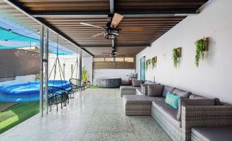 The location is a short drive 5 Minutes driving to the popular Isla verde area without being in the middle of all the hustle and bustle - which families appreciated .Close to major areas like Condado, Old San Juan, and Isla Verde Beach, our cozy, modern home features a relaxing Hot Tub in the backyard with BBQ. And don’t worry with the black out we have Tesla solar system. So important in the island