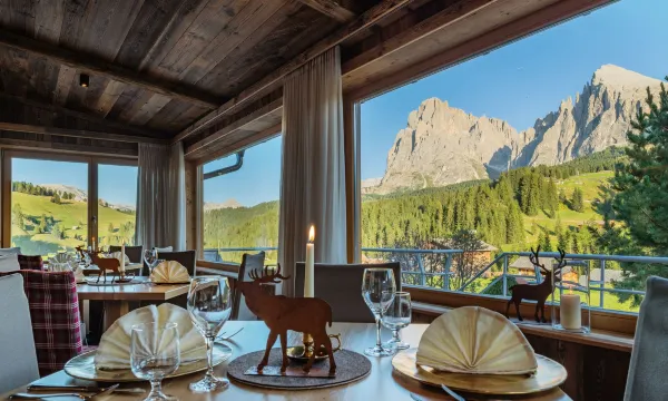 위치: 호텔은 스키 슬로프에서 몇 미터 떨어진 곳에 위치하며, 주변 산과의 멋진 전망을 자랑합니다. Alpe di Siusi와 같은 하이킹 및 스키 활동에 이상적인 위치입니다.