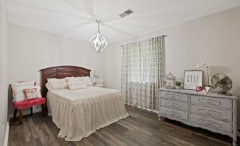 This recently remodeled home is entirely decorated in French Country decor - chandeliers & custom features give a modern cottage feel. You will love the large screened deck that features tin ceilings, gas fire pit, television, couch, and rockers. Step out onto the concrete pad to watch the kids play as you enjoy the Adirondack chairs and cook on the Blackstone. Extra large yard with privacy fence. Kitchen has all high end stainless appliances & is equipped with all the items to cook that perfect meal for your friends and family. All bedrooms have plenty of room and offer lots of storage space. King bed has remote to change positions to offer additional support and luxury. Two additional bedrooms with a queen and full size bed. Convenient, centralized location to access downtown Chattanooga & Northwest GA cities, such as Dalton & Chickamauga, in minutes. It takes less than 5 min to access I-75 and I-24!About pets:Pets allowed: dogs less than 20 lbs per pet (limit one pet total).About checkOut:Check out before 11:00 AM.About children:Children allowed: ages 0-17.About checkIn:Check in after 4:00 PM.About smoking:Smoking is not permitted.About minBookingAge:Minimum age to rent: 25.About events:Events allowed: family gatherings, birthday parties, weddings.Maximum event attendees: 10.