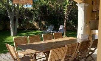 Outside a large terrace equipped with a summer kitchen, a convivial table (and chairs) and a kitchen (electric griddle, sink) welcome you to share special moments face the swimming pool.