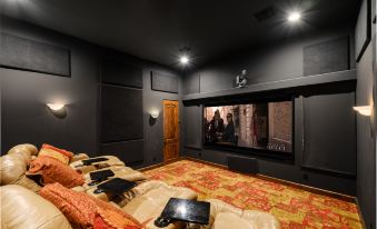 Following your dinner, consider making your way to the exclusive movie theater to enjoy a film on the expansive screen. It's an ideal setting for a family movie night or a snug, romantic evening indoors. Outdoors, the yard is designed like a luxurious resort, providing the perfect space to bask in the sun or host gatherings. You can take a refreshing dip in the private pool or unwind in the spa, all while taking in the breathtaking mountain views. The shaded patio area offers comfortable seating for al fresco dining, complete with a BBQ grill for preparing your favorite dishes. As the night progresses, gather around the fire pit and relish the soothing radiance of the flames.
