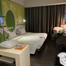 위치가 마음에 들고 옥상 레스토랑/바가 정말 훌륭합니다. 하지만 술의 선택은 그다지 좋지 않습니다. 너무 제한적입니다. 방은 훌륭하고 각 층마다 물 기계를 제공합니다. 조금 이상하게 싱크대가 침대 옆에 있지만 불평할 만큼 큰 문제는 아닙니다. 유일한 관심사는 3in1 샤워 젤, 샴푸, 컨디셔너를 별도로 사용하는 것이 훨씬 더 좋습니다. 전반적으로 머물기 좋은 곳