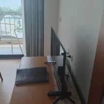 방의 중요한 단점은 침대와 테이블 옆에 무료 소켓이 없다는 것입니다. 노트북을 사용해야 하는 경우 TV 소켓을 끄는 경우에만 사용하는 것이 상대적으로 편리합니다. 나머지 소켓은 불편한 위치에 있습니다. 사진에 이렇게 나와있어요