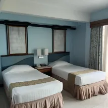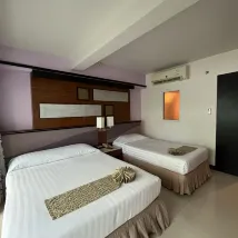 객실 3개를 예약했는데, 한 객실의 에어컨이 시원하지 않아서 직원이 와서 점검하고 교체해 달라고 했는데, 아주 만족스러웠습니다. 조식도 맛있었고, 메뉴는 매일 바뀌어서 편리했습니다. 호텔은 해변과 세븐일레븐 근처에 있고, 길가에 음식을 파는 가게도 있었습니다.