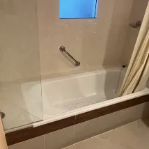 호텔이 오래 된 것 같아요. 좀 무섭긴 한데, 특히 엘리베이터가 열리고 닫힐 때마다 시끄럽고 무서운 소리가 나요. 욕실은 낡았고, 변기 시멘트가 깨져 있었어요. 샤워실에는 불이 안 들어와요.