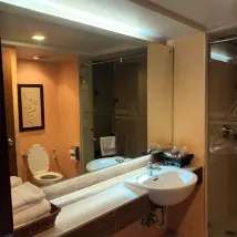 청결에 관해서는, 객실은 카펫이 깔려 있고 먼지가 꽤 많습니다. 유리 선반이 먼지가 많이 쌓인 것을 눈여겨보세요. 저녁에 닦아도 아침에 먼지가 많이 쌓입니다. 카펫이 먼지를 흡수하므로 진공청소기로 청소하는 것이 좋습니다.