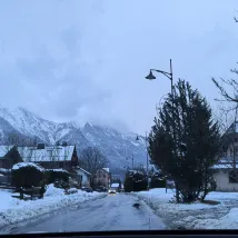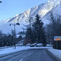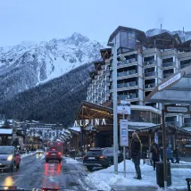 눈 덮인 산 속에 있는 인근 마을인 샤모니 몽블랑까지 차로 10분 거리입니다.